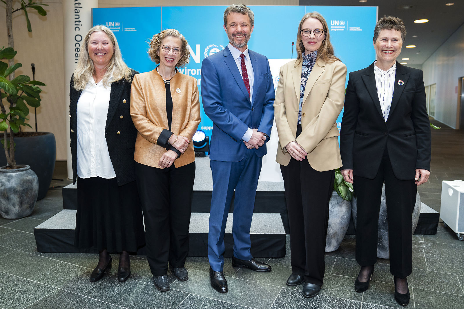 На снимке Его Королевское Высочество вместе с директором Копенгагенского Климатического Центра ЮНЕП Сюзанной Педерсен, исполнительным директором Программы ООН по окружающей среде и заместителем Генерального секретаря ООН Ингер Андерсен, Министром окружающей среды Леай Вермелин и генеральным директором ЮНОПС и заместителем Генерального секретаря ООН Гретой Фаремо.