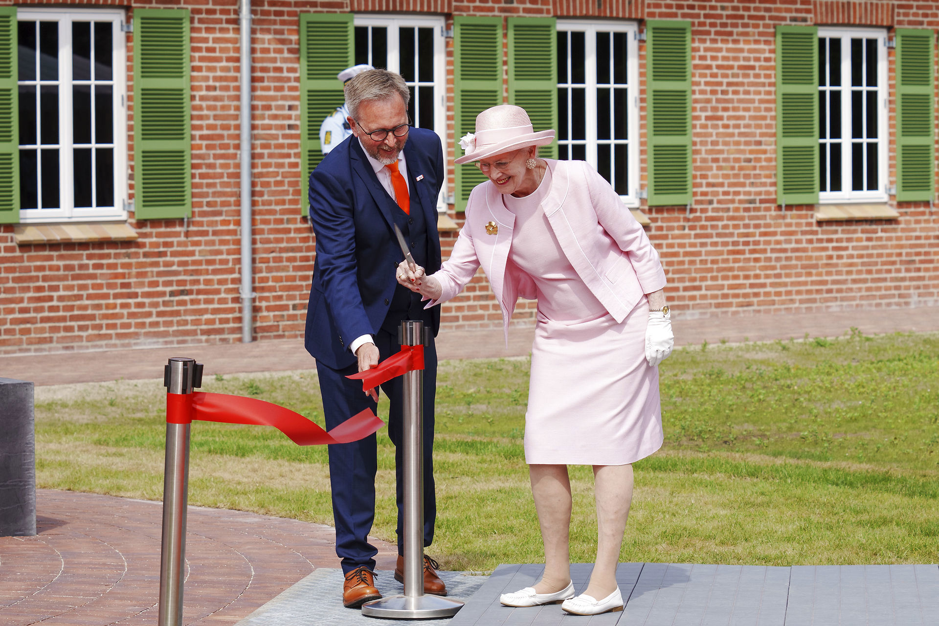 После обеда, Ее Величество приняла участие в открытии Международного Музея "Побег" в Оксбёле. В конце WWII Дания приняла около 250 000 мирных жителей Германии, спасающихся от войны и разрушений. Около 35 000 человек оказались в лагере беженцев в Оксбёле, а новый музей, в котором рассказывается о жизни беженцев в Дании со времен WWII до сегодняшнего дня, расположен в некоторых частях старого лагеря.