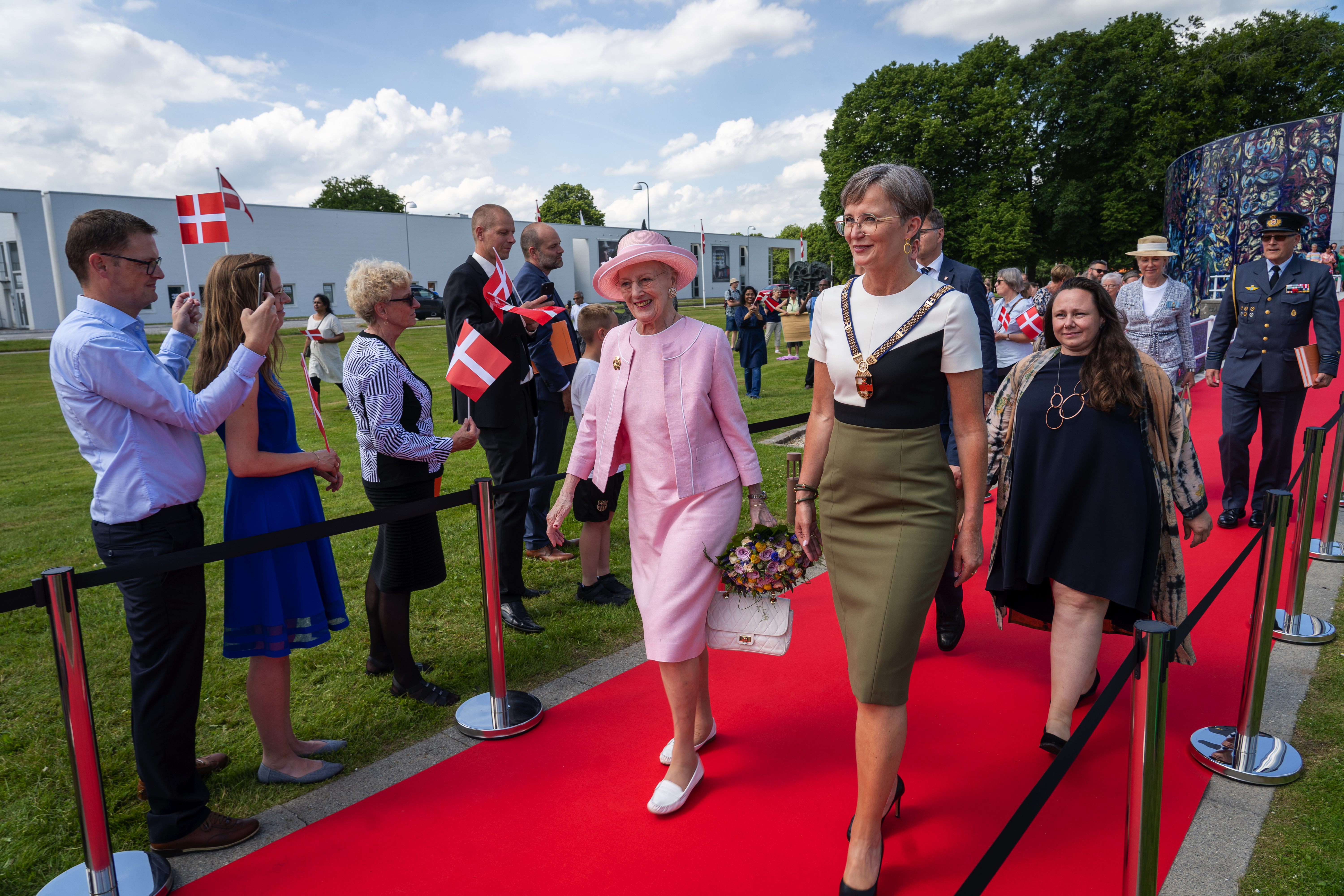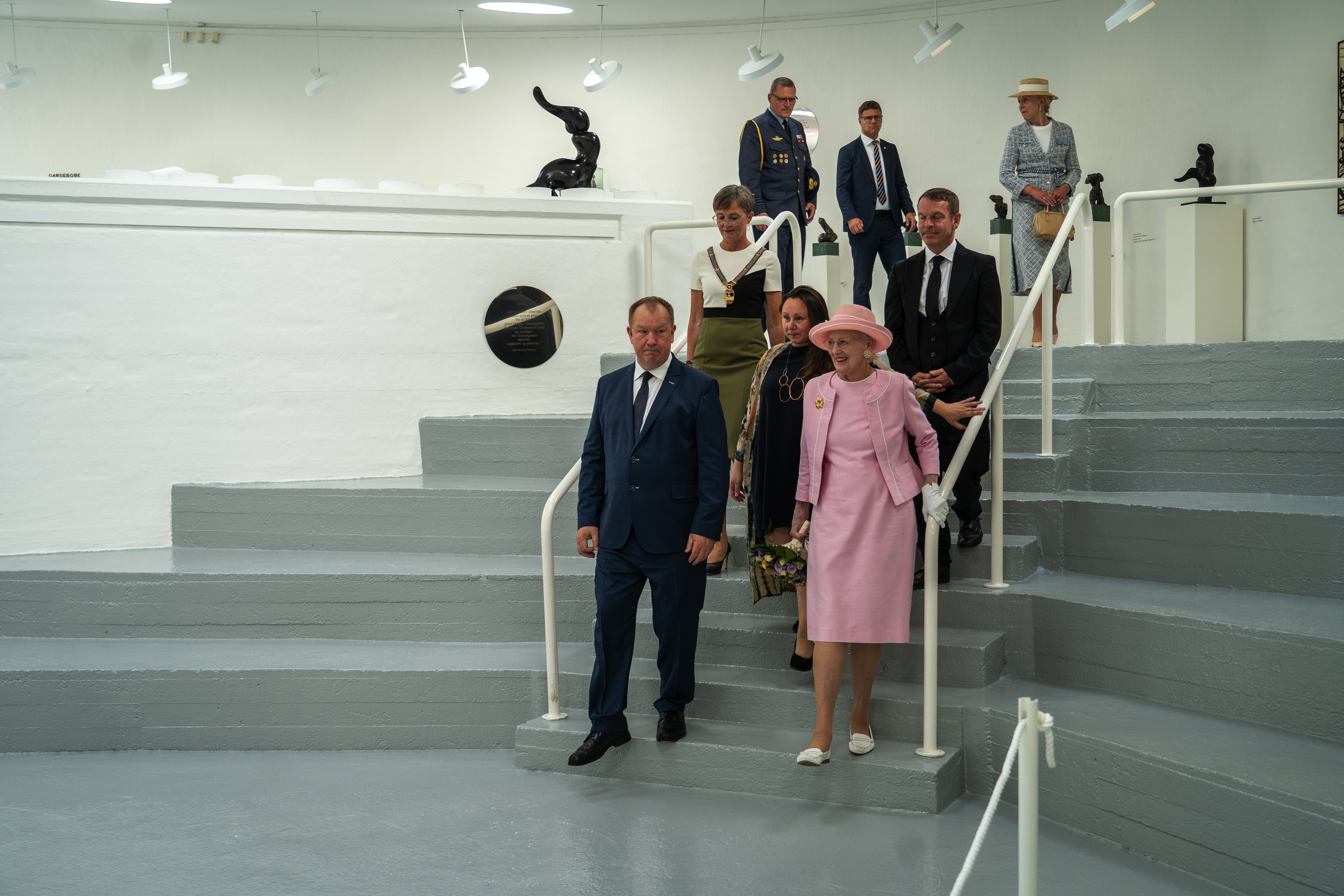 По прибытии в музей Королеву Маргрете приняли мэр Хернинга Дорте Уэст и председатель правления музея Финн Поульсен.