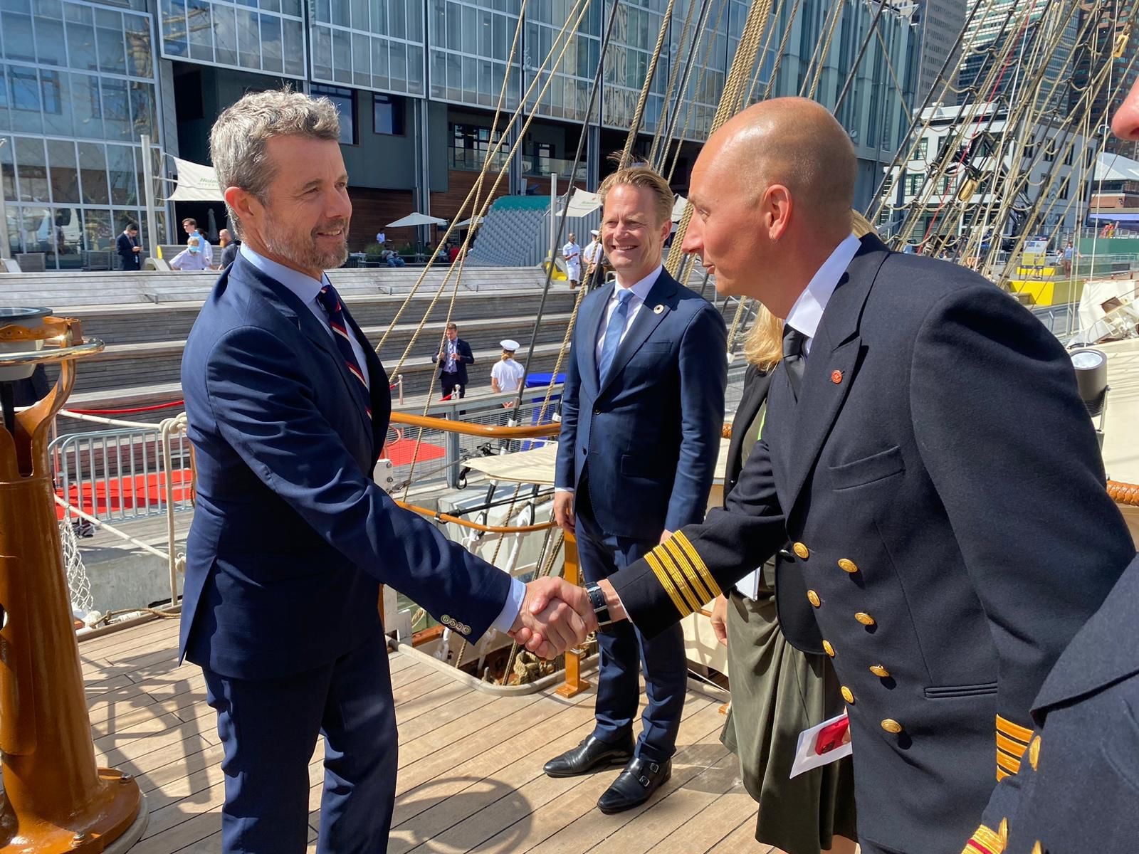 Встречи проходили на учебном корабле «Дания», который на этой неделе пришвартовался в южной части Манхэттена, чтобы приветствовать датских и иностранных гостей на борту по случаю открытия Генеральной Ассамблеи ООН.