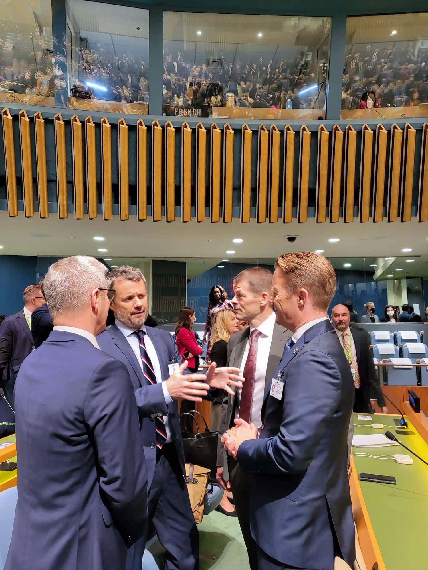В первый день визита Кронпринц вместе с Премьер-министром Метте Фредериксен принял участие в открытии дебатов в штаб-квартире ООН, где с заявлениями выступили главы государств и правительств 193 государств-членов ООН. (на фото выше)