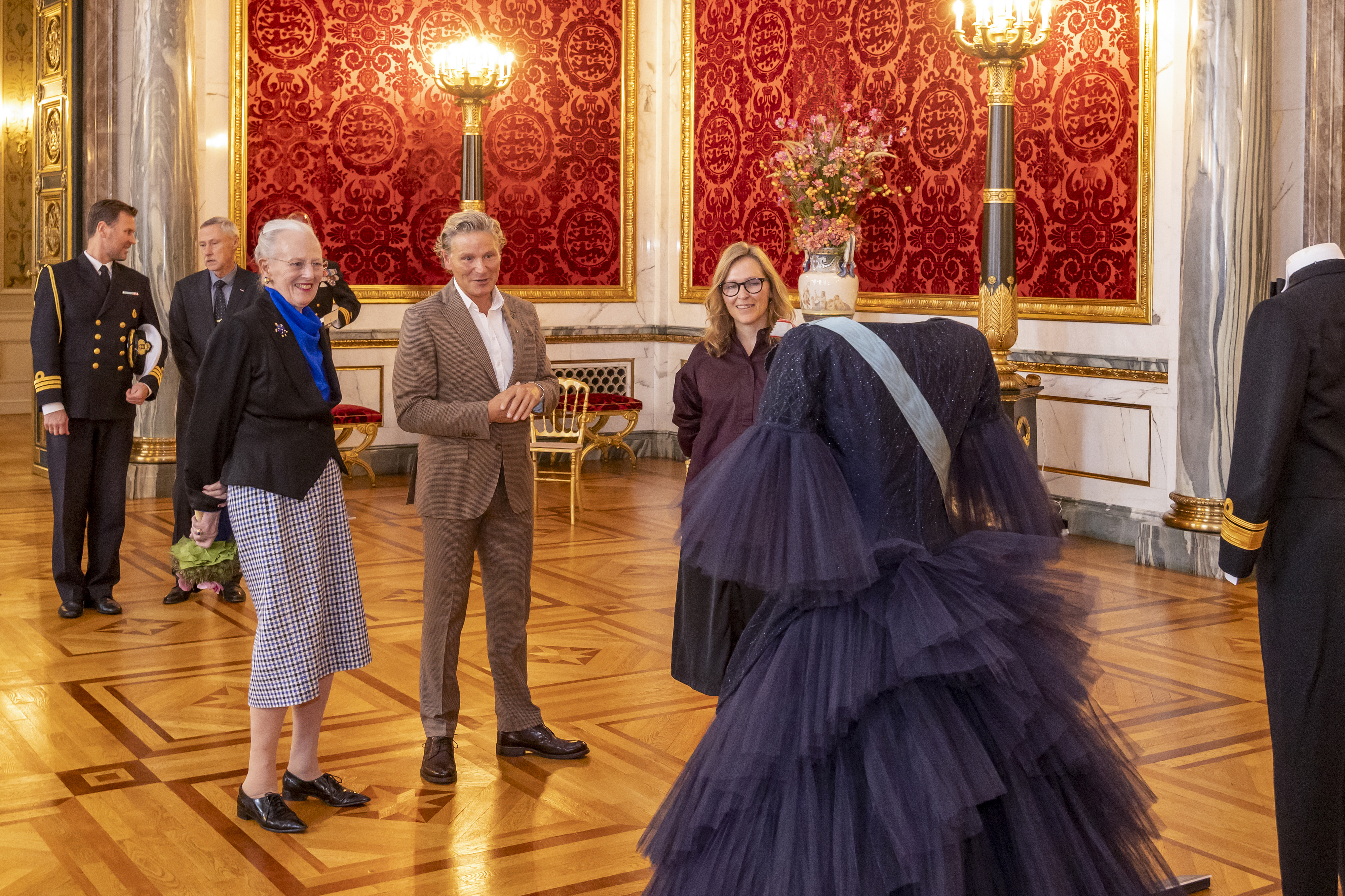 Наряду с платьем Кронпринцессы с бала в Фолькетинге в 2018 году и парадной униформой ВМФ Кронпринца платье Королевы, изготовленное к 60-летию Ее Величества, выставлено в Бархатном Зале.