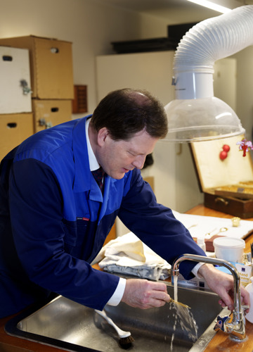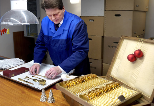 Сервировщик отвечает за обработку, техническое обслуживание и управление запасами многих предметов коллекции, таких как 800 серебряных тарелок с гербом Королевской Семьи, супница Кристиана VII и коллекция стекла Фредерика IV. Королевская посуда тщательно отбирается для каждого приема за несколько месяцев вперед - когда есть время между ежедневной рутиной в Королевских Дворцах.