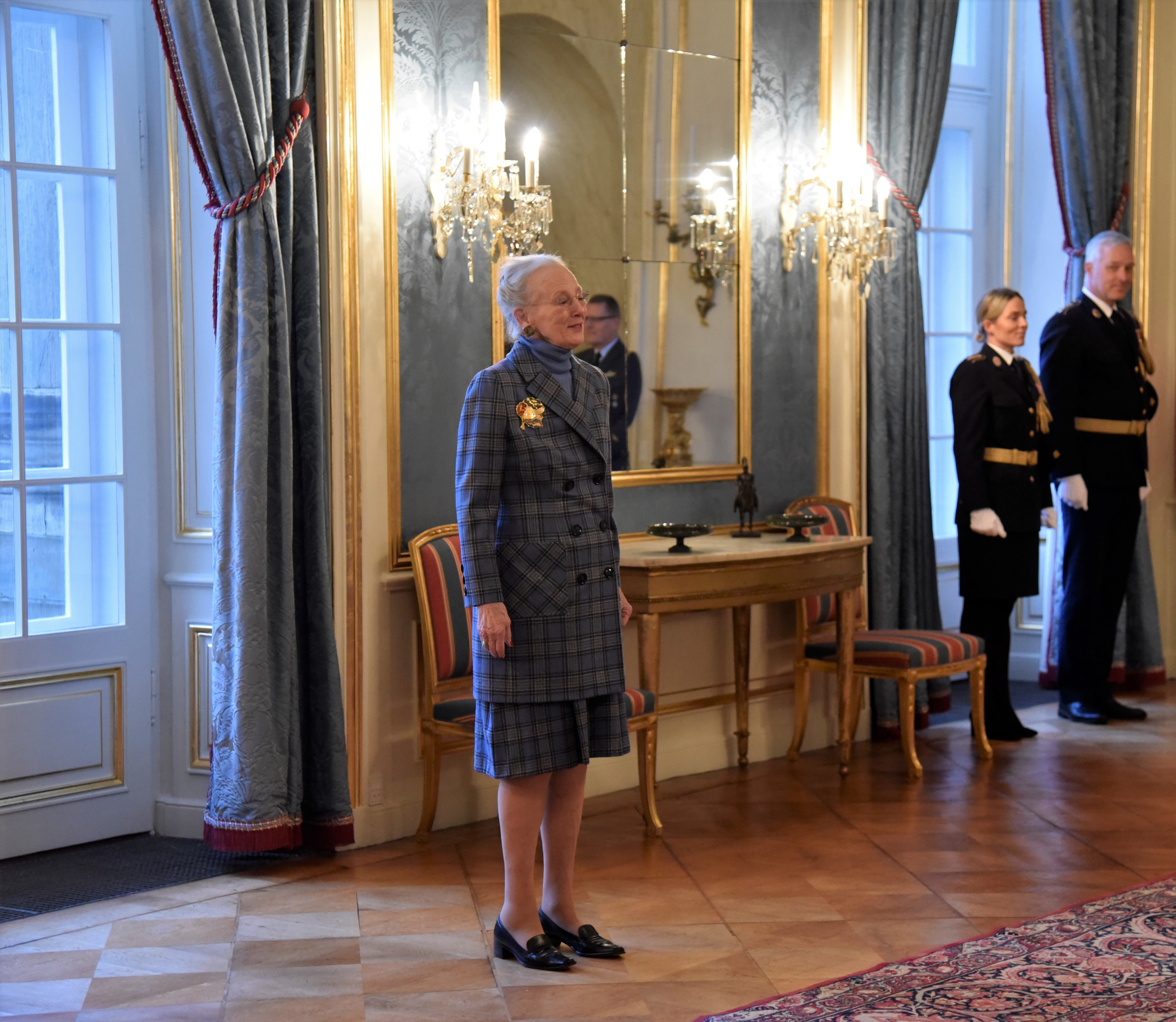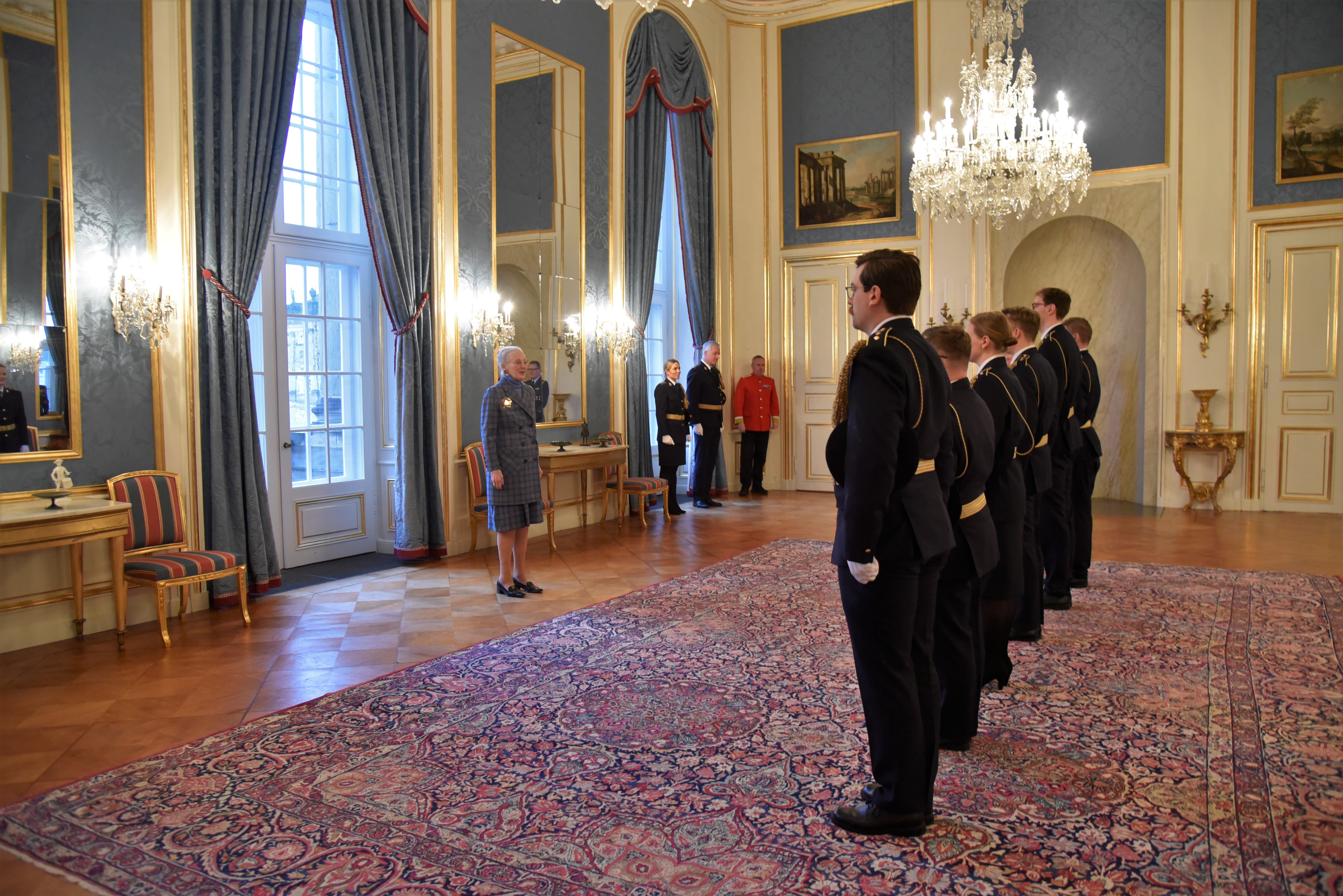 Вчера, Королева Маргрете II приняла недавно назначенных старших лейтенантов ВВС и командиров корпусов из Национального Агентства по Чрезвычайным Ситуациям. Прием проходил в Рыцарском Зале Дворца Кристиана IX в Амалиенборге.
